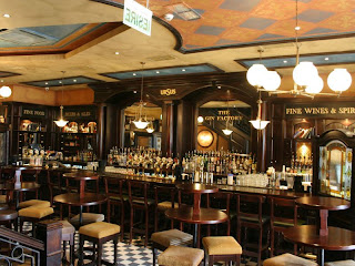 Partea placuta a serii am petrecut-o la The Gin Factory – un local din centrul vechi. Nu stiu exact cat de mult starea noastra de bine s-a datorat localului si atmosferei de acolo si cat bauturilor excelente pe care le-am servit :). Nu sunt o cunoscatoare in ale cocktail-urilor dar aseara am baut (impreuna cu Vlad) Mojito, Hurricane si Godfather. La Mojito m-a impresionat menta – despre care am descoperit ca e perfecta sa-ti improspateze respiratia daca o consumi in stare bruta si care iti face mainile sa miroasa intr-un mare fel. La Hurricane mi-a placut mult dulceata fina a bauturii, iar Godfather este un mix perfect intre tarie (dupa gusturile mele) si aroma. Mai ales ca Godfather este servit cu 3 boabe de cafea si o cireasa de bar (din acelea zaharisite, rosii perfect, inclusiv codita, care se pun in bauturi). In ordinea prezentarii lor, poze cu cocktail-urile si o poza din bar. Apropo de The Gin Factory, nu cred ca o sa treaca mult pana mai ajungem pe acolo. Marele minus, de care poti totusi sa faci abstractie daca esti cu persoanele potrivite, este faptul ca unii oameni prezenti au o tenta de “pitzi/mane” (n-am stiut cum sa exprim mai bine aceasta trasatura).