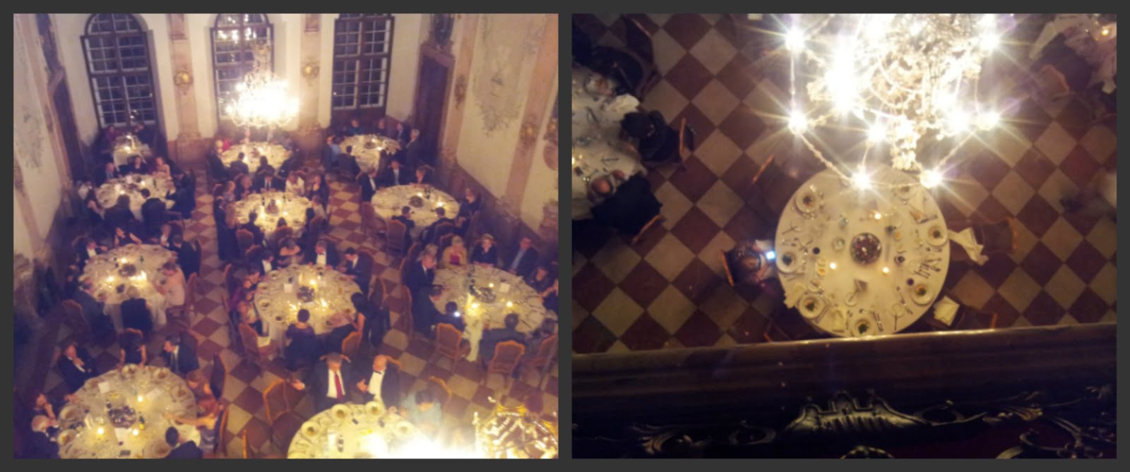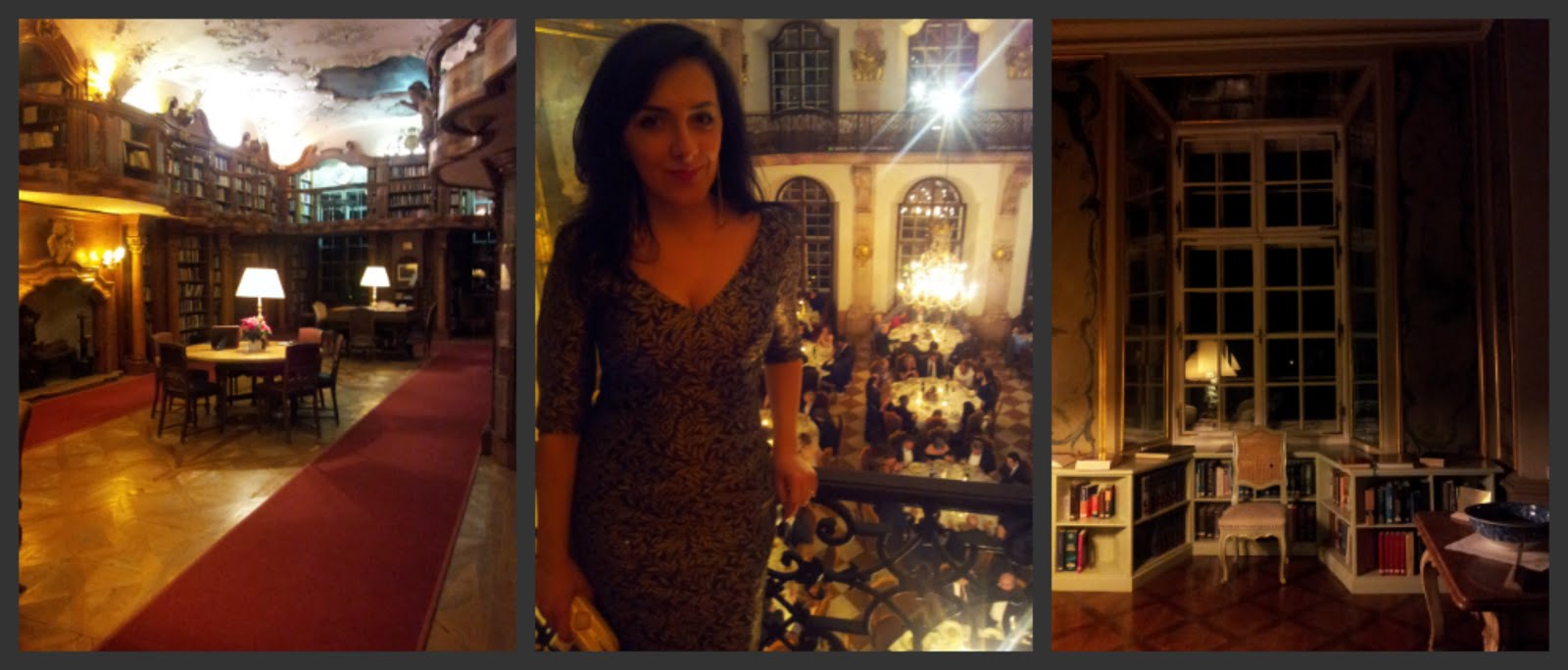 Receptia s-a facut la orele 19:00, intr-un salon in care ardea focul in seminee, iar in jur de orele 20:00 am fost invitati sa luam masa la unul dintre etajele superioare. Reuniunea oficiala a tinut cam pana pe la unu noaptea. Atasez si niste poze, fiind evident ca ele fac mai mult decat 1000 de cuvinte… Cel mai mult m-a impresionat biblioteca, unde cred ca as sta cu orele sa citesc, insa si sala in care a fost servita masa era deosebita.